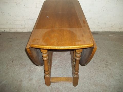 A SOLID OAK DROP LEAF DINING TABLE