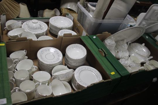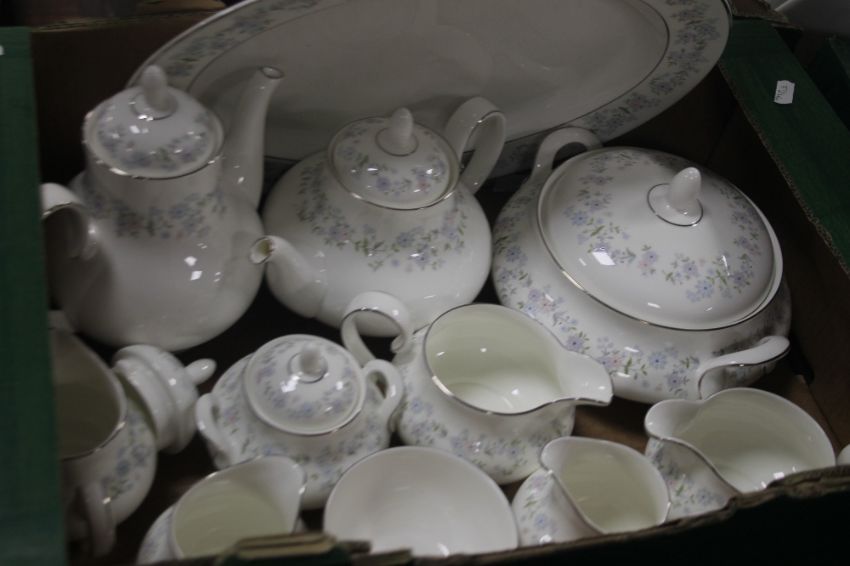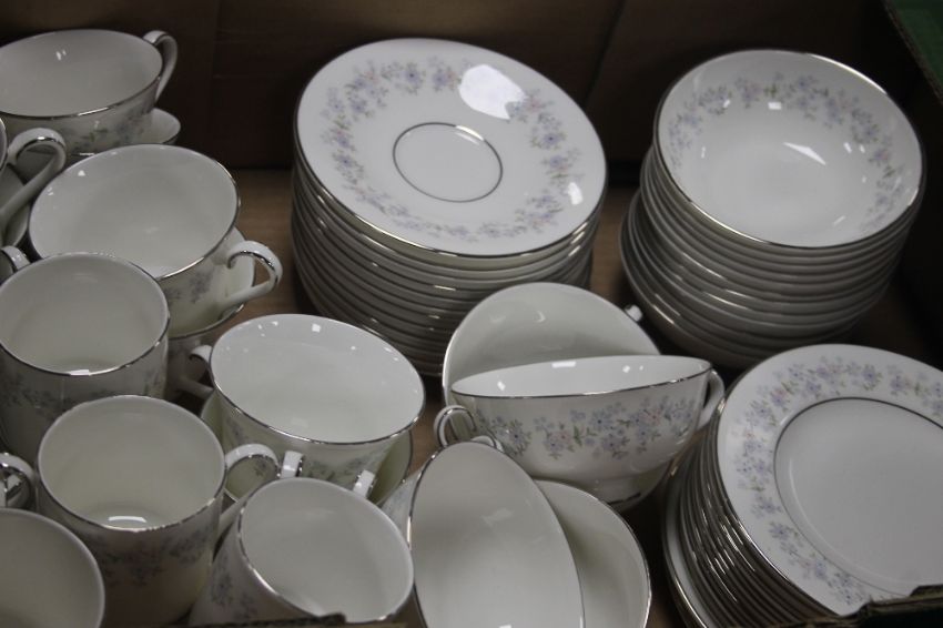 THREE TRAYS OF ROYAL DOULTON AMERSHAM TEA AND DINNERWARE (TRAYS NOT INCLUDED)