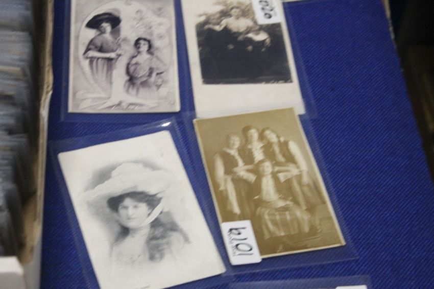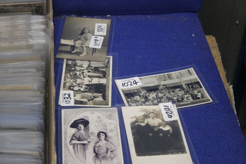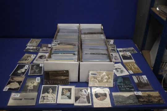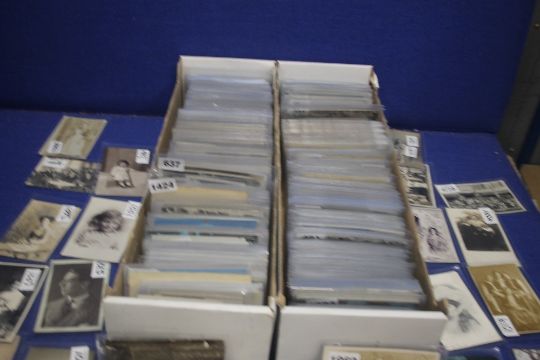TWO TRAYS OF ASSORTED POSTCARDS AND PHOTOGRAPHS IN MANY HUNDREDS, to include vintage examples from the early 1900s