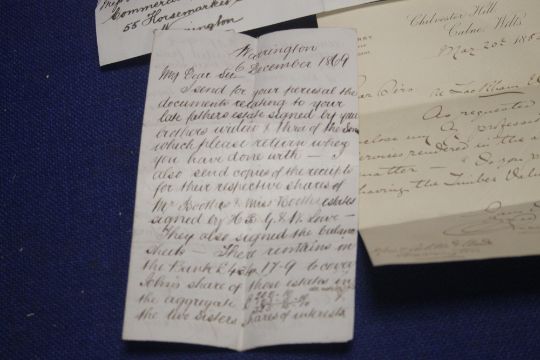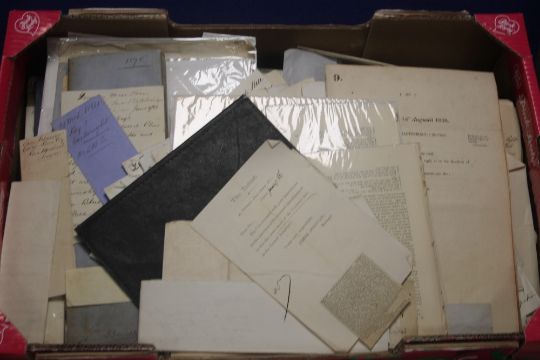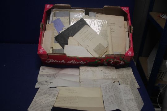 A TRAY OF LETTERS AND RECIEPTS, to include examples from 1866, 1878 etc