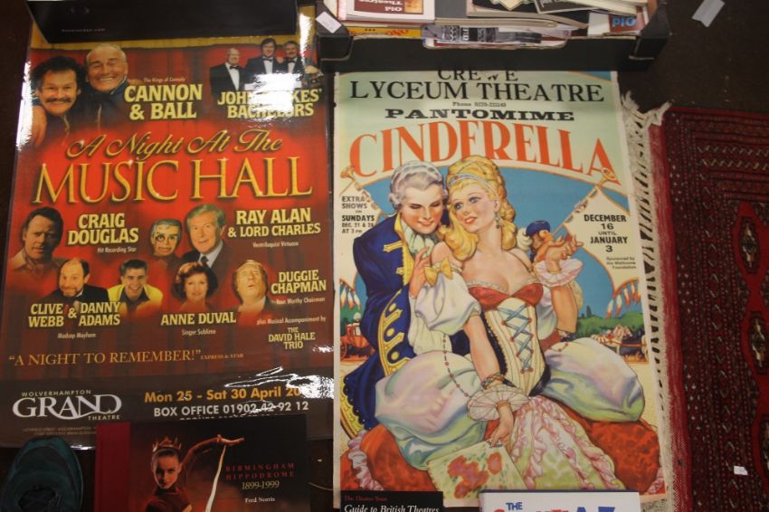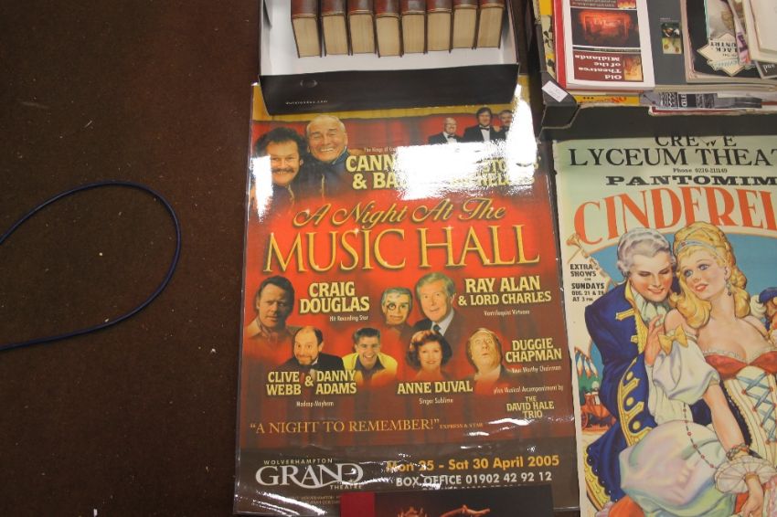 A COLLECTION OF THEATRE POSTERS, to include 1951 Royal variety show poster from the London Palladium, 2005 Wolverhampton Grand Theatre "A Night at the Music Hall, also Birmingham Alexander Theatre and Crewe Lyceum posters, together with Charles Dickens novels and cinema books and magazines to include Blackpool 1981, and 1983, and Royal Variety show programmes etc