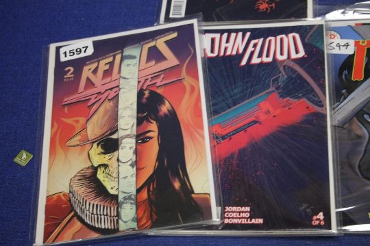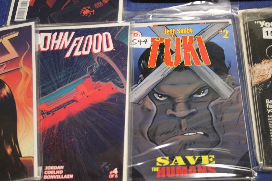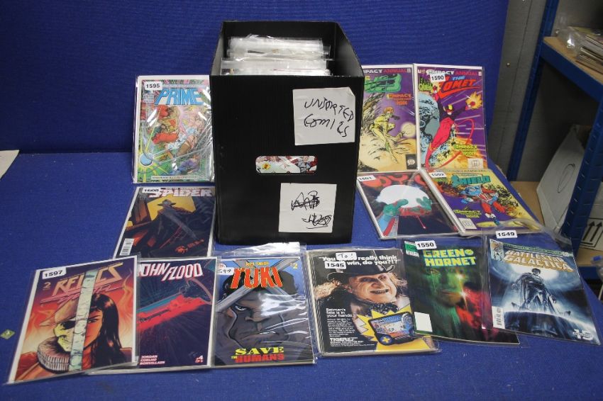A TRAY OF MISCELLANEOUS COMICS. to include Spider, Prime, John Flood, The Dark, Alison Dare, Ultimate War, Battlestar Galactica etc (TRAY NOT INCLUDED)"