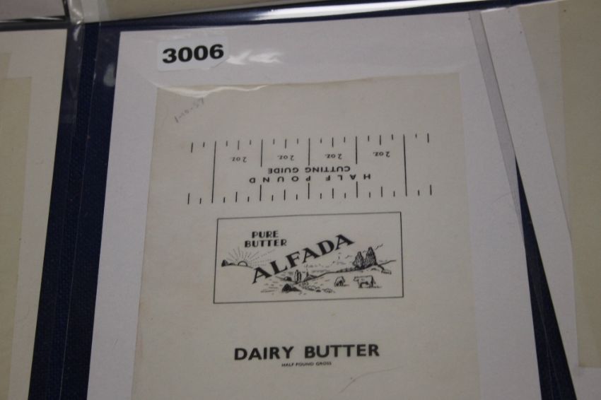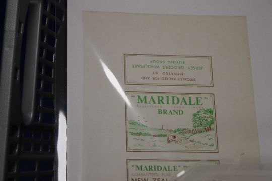 A TRAY OF ADVERTISING LABELS, to include Peveril Butter, Elco Butter etc