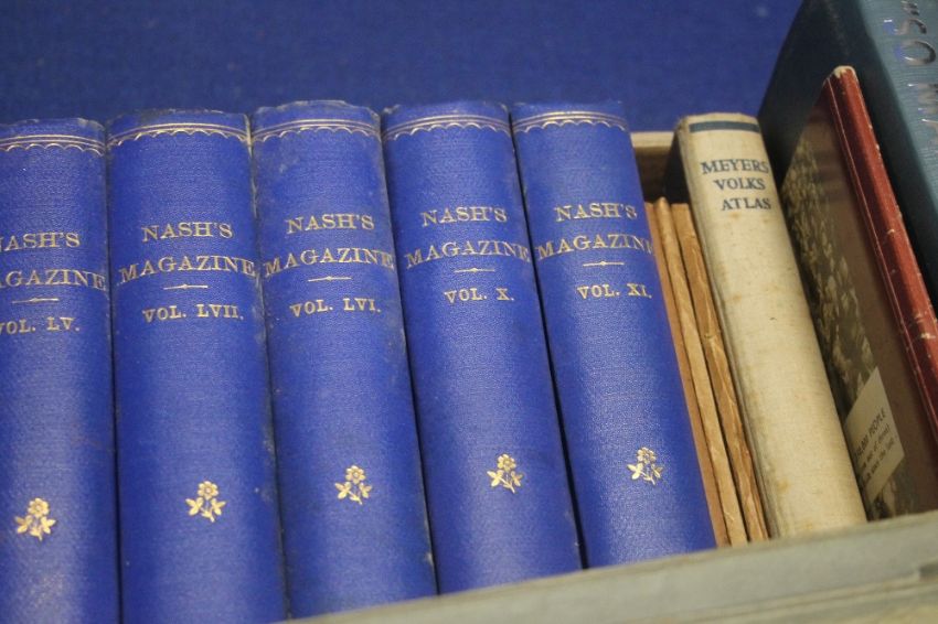 A TRAY OF MISCELLANEOUS BOOKS TO INCLUDE BOUND VOLUMES OF NASH'S MAGAZINE, Art Illustrated Magazine etc.