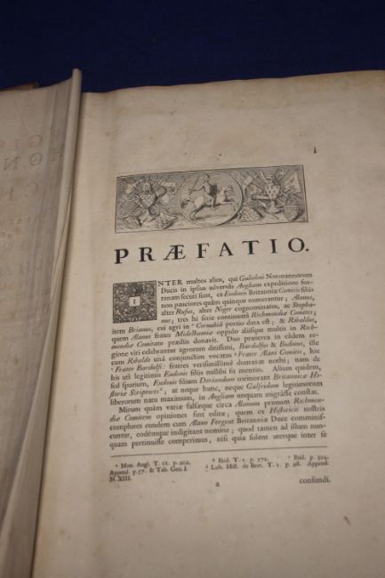 RICHARD- YORKSHIRE-1722: REGISTRUM HONORIS DE RICHMOND- LONDON 1722, a rare and extensive large folio work on the early history of Richmondshire, its town and villages. Comprising over 450pp, in sections, appendices and indexes. Complete with all plates, mostly of coats and arms and armorial seals, including a folding map of Richmondshire and a folding view of the town with its castle and church."Printed by R. Gosling, Fleet Street 1722. Text in Latin Ownership signature on title page of Thomas Zouch (1737-1815) Divine and Antiquary (See extensive entry in DNB) Contemporary full leather binding, boards detached Ex. Lib