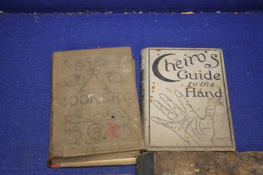 19TH CENTURY HANDWRITTEN / SCRAPBOOK RECIPE / MEDICAL BOOK, title page inscribed "J G Turner 10th Oct 1844, Useful Recipes etc. Contains numerous newspaper cuttings interspersed with handwritten notes including 'sting of a bee cure', 'warts to get rid of' 'cleaning and preserving books', 'preservation of apples', recipe for Indian chutney etc. together with 'Mrs Beeton's Cookery Book' 1905, 'Ladies' Manual of Practical Hydropathy' by Mrs Smedley 1872, 'Cheiro's Guide to the Hand' and a facsimile of "The Tooth-ache" imagined by Horace Mayhew and realized by George Cruikshank (5)