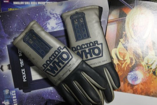 A TRAY OF DOCTOR WHO COLLECTABLES, to include trading cards, chocolates, a pair of gloves etc (TRAY NOT INCLUDED)