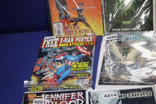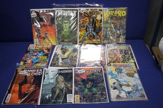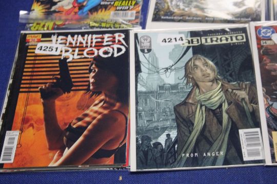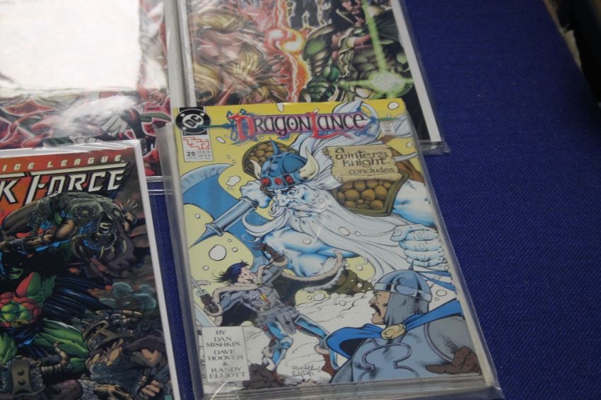 DC JUSTICE LEAGUE TASK FORCE COMIC ISSUE 34 MAY 1996, together with Lion Forge Abirato comic issue 1 of 6, Dynamaite Jennifer blood issue 16,18, 19, 24 and 25, Wizard Fzbraary 1997 with Iron man card, The first comics, Vortex comics, Dragon lance a winters night issue 20 multiple copies etc