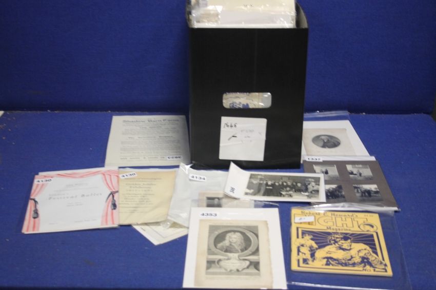A TRAY OF GENERAL EPHEMERA ETC, to include Photographs, Engravings, Theatre Programmes, etc