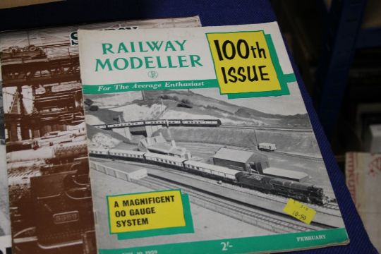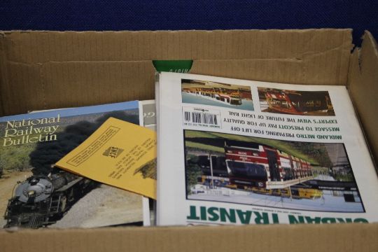 A TRAY OF RAILWAY RELATED BOOKS, to include Railway Modeller, Tramways and Urban transit etc