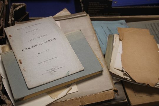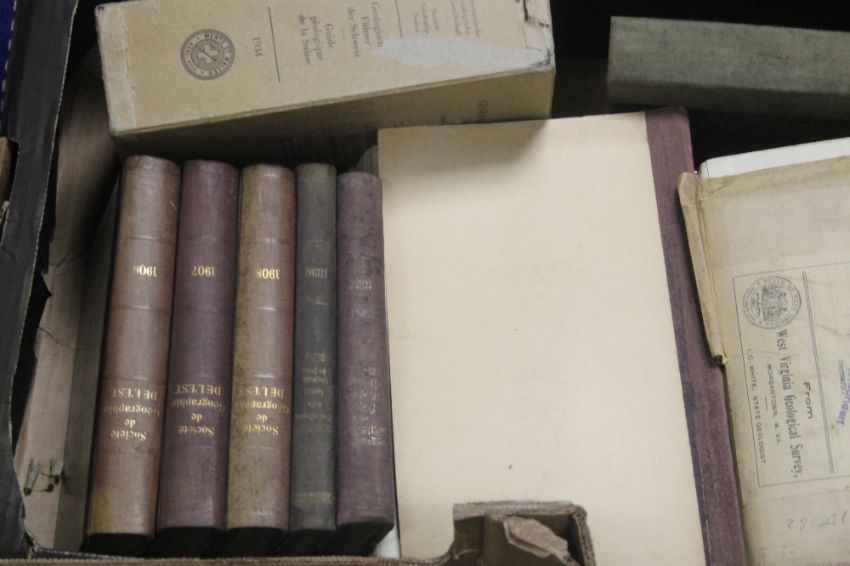 FOUR BOXES OF BOOKS AND PAMPHLETS ON MINEROLOGY, GEOLOGY ETC, uk, overseas,nany maps and plates