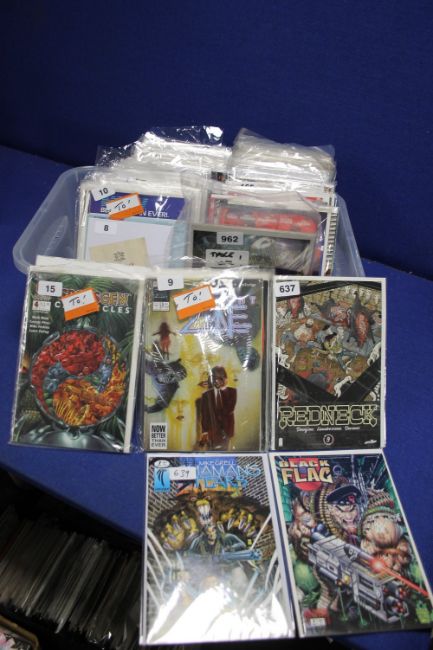 A BOX OF COMICS, to include Redneck, Storm watch, Unleash, Monster show, Tarzan assasin, Queen and country etc