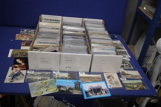 THREE TRAYS OF ASSORTED POSTCARDS IN MANY HUNDREDS, to include vintage examples from the early 1900s
