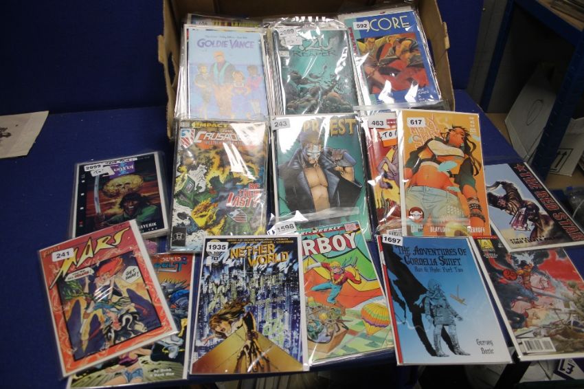 A TRAY OF ASSORTED COMICS, to include Ice Age On The World Of Magic, Bullwhip, Priest, The Crasaders, Airboy etc (TRAY NOT INCLUDED)"