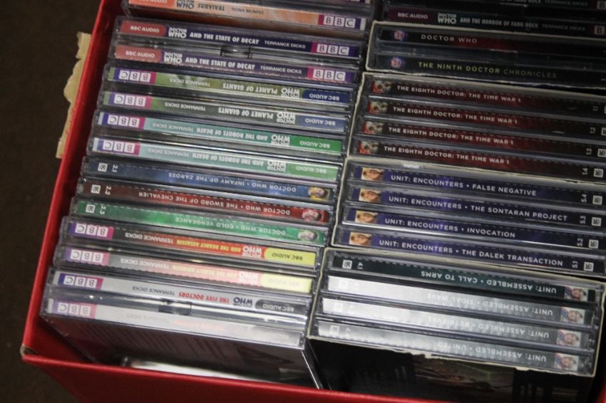 A LARGE QUANTITY OF DOCTOR WHO AUDIO BOOKS CONTAINED IN 4 BOXES