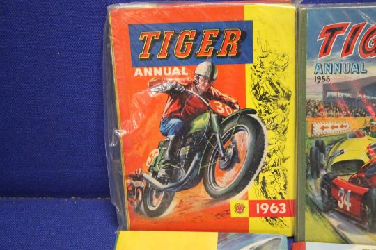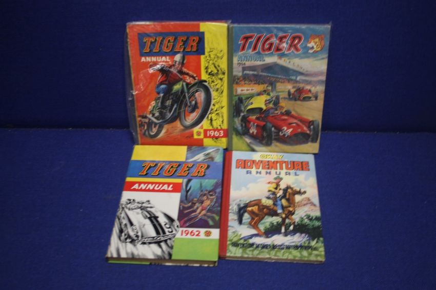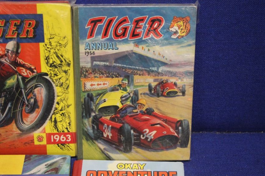 THREE TIGER ANNUAL 1958, 1962, 1963, together with Okay Adventure Annual