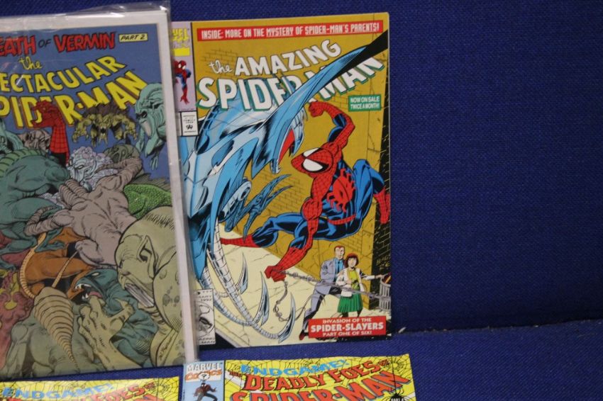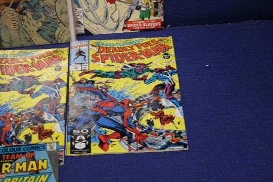 A COLLECTION OF MARVEL AND DC SPIDER-MAN COMICS, to include Marvel team up Spider-man and Captain Britain issue 65 1978, The Spectacular Spider-man Death of Vermin part 2 issue 195 1992 x 2, Superman and Swamp Thing issue 8 1979 etc (7)