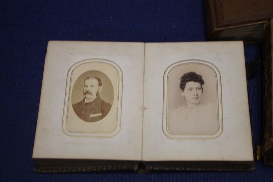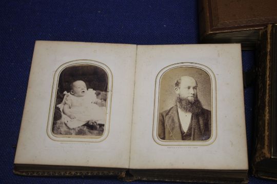 THREE VICTOTIAN LEATHER BOUND PHOTOGRAPH ALBUMS WITH CLASPS, containing Cartes De Visites Cabinet cards