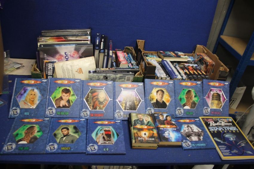 TWO TRAYS OF DOCTOR WHO HARDBACK AND PAPER BACK BOOKS (TRAYS NOT INCLUDED)"