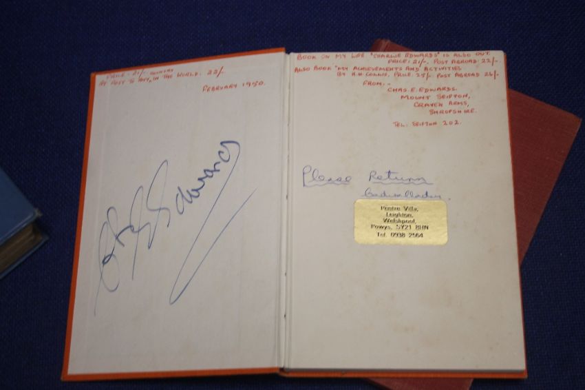 CHARLES EDWARDS SIGNED COPIES OF "ROUND THE WORLD AT 75, and Charles Edwards together with an author signed copy of "The story of a Labrador Doctor", by Wilfred Grenfell