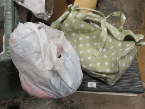 A WICKER LINEN BOX WITH WOOL ETC TOGETHER WITH A RETRO STOOL / BOX (2)