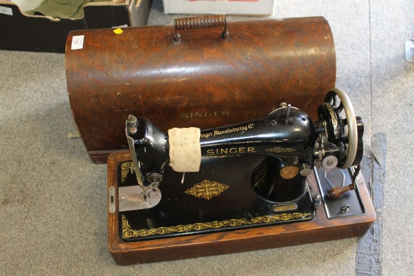 A VINTAGE CASED SINGER SEWING MACHINE