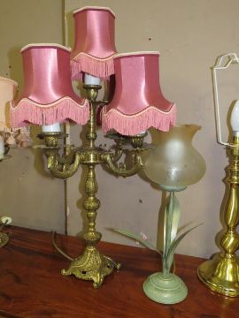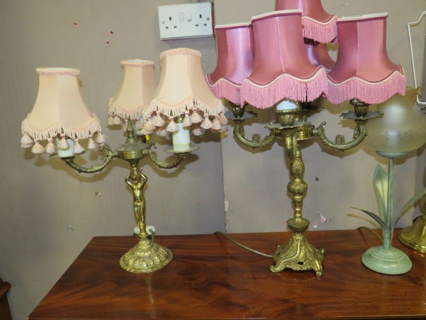 NINE ASSORTED BRASS TABLE LAMPS TO INCLUDE A BANKERS LAMP