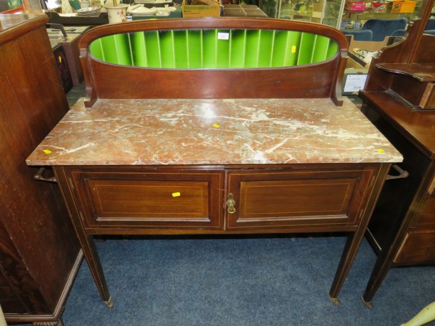 AN EDWARDIAN MAHOGANY MARBLE TOPPED WASHSTAND W-122 CM