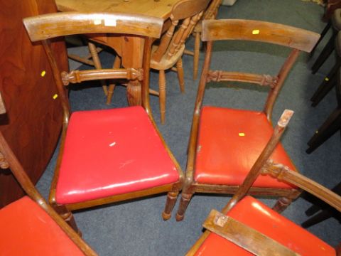 A SET OF FOUR 19TH CENTURY DINING CHAIRS ( ONE CHAIR A/F )