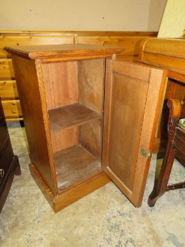 AN EDWARDIAN OAK POT CUPBOARD