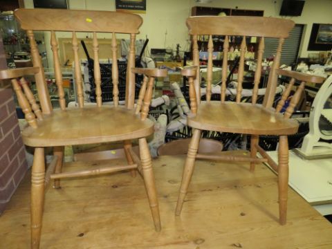 A FARMHOUSE STYLE PINE TABLE AND SIX CHAIRS
