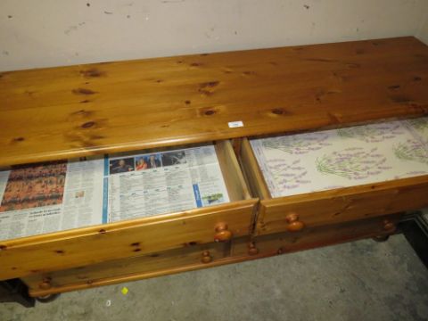 A MODERN HONEY PINE EIGHT DRAWER CHEST W-168 CM