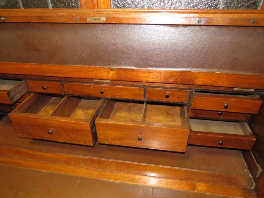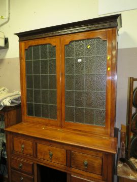 A LARGE EARLY 20TH CENTURY MAHOGANY SECRETAIRE GLAZED BOOKCASE H-213 W-121 CM
