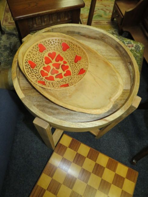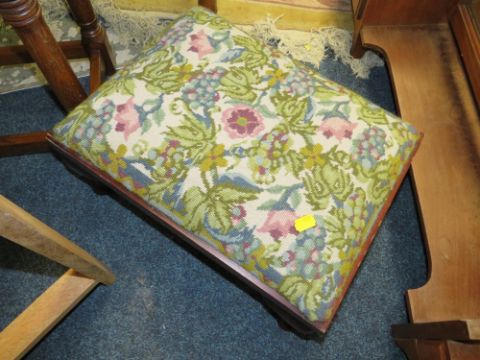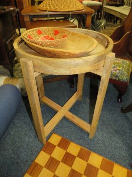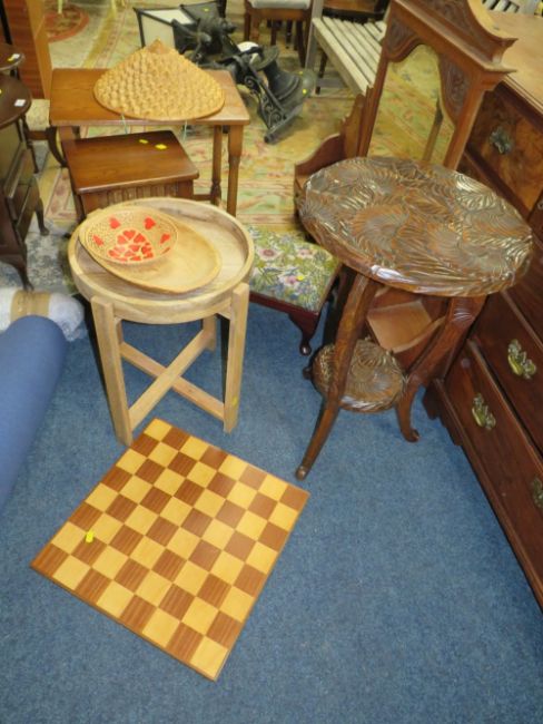 A QUANTITY OF ASSORTED FURNITURE TO INCLUDE TWO OAK TABLES, STOOL ETC