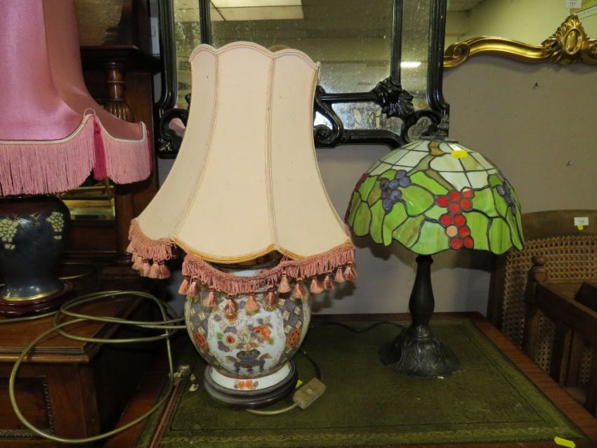 SIX ASSORTED TABLE LAMPS TO INCLUDE A TIFFANY STYLE EXAMPLE