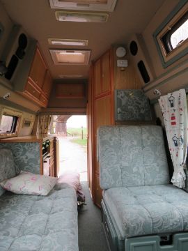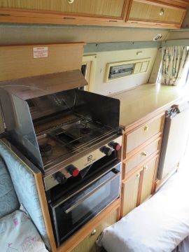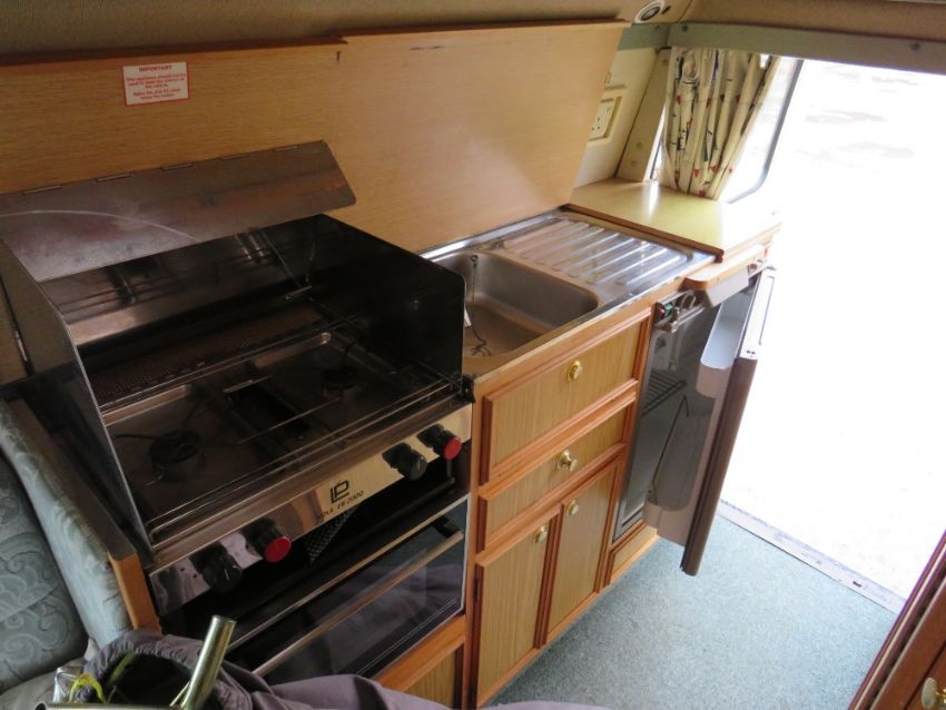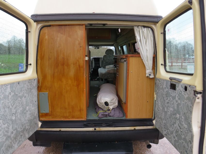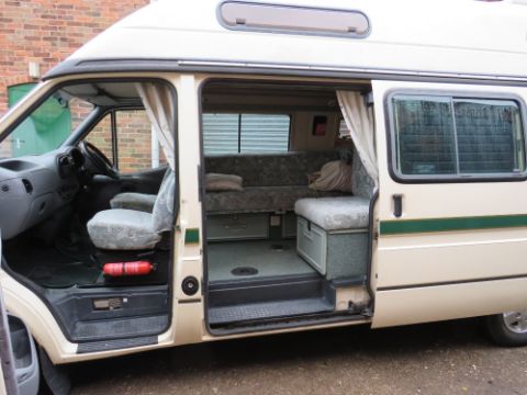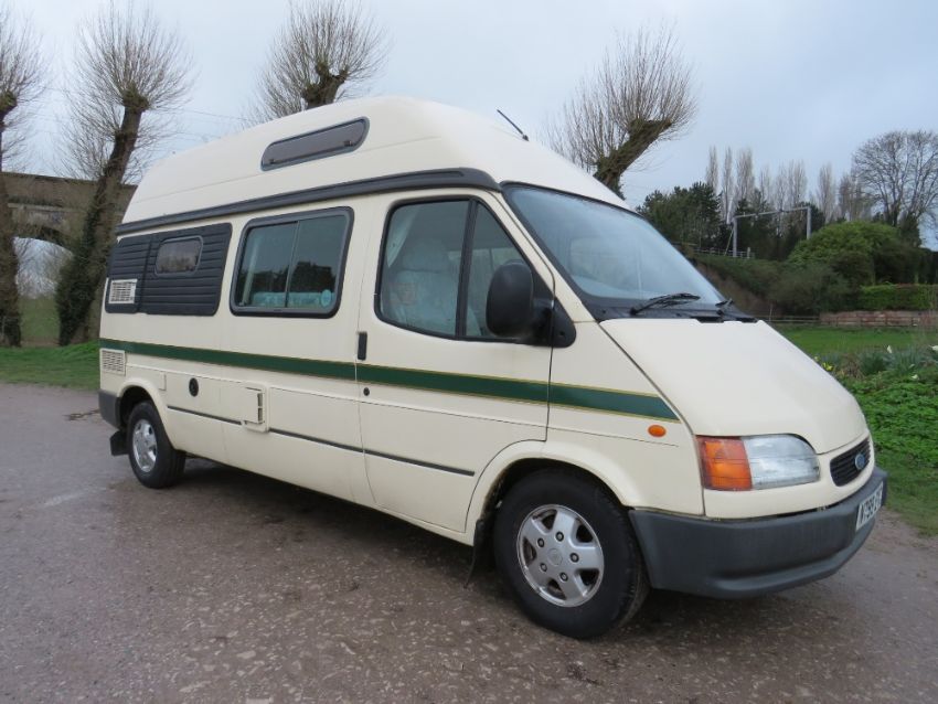 A 1996 FORD TRANSIT CAMPER VAN DEUTTO AUTOSLEEPER - COMPLETE WITH PAPERWORK AND KEYS, AWNING, 2 GAS BOTTLES, HOOK UP AND CABLES ETC.