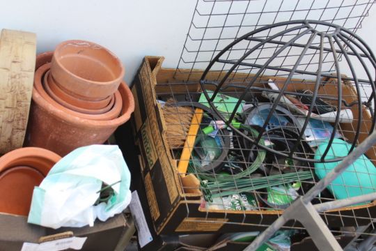 A LARGE QUANTITY OF ASSORTED GARDEN ITEMS TO INCLUDE WOODEN LADDERS ETC