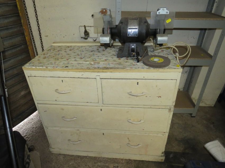 A VINTAGE WHITE CHEST AND BENCH GRINDER