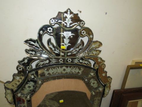 A LARGE MODERN VENETIAN STYLE WALL MIRROR WITH SEPARATE NEW MIRROR GLASS