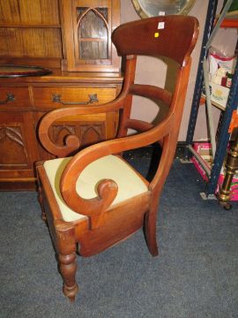 AN ANTIQUE MAHOGANY COMMODE ARMCHAIR