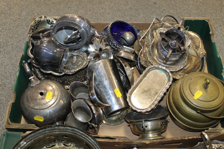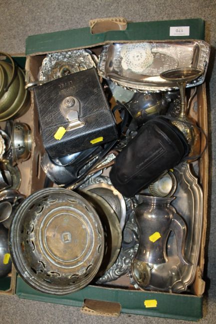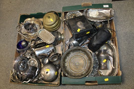 TWO TRAYS OF ASSORTED METALWARE TO INCLUDE A VINTAGE LEVEL, ETC