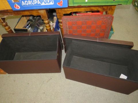A PAIR OF MODERN STORAGE STOOLS TOGETHER WITH A PINE CHEST (3)