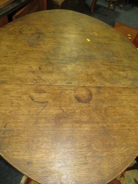 AN ANTIQUE OAK BOBBIN LEG DROPLEAF TABLE