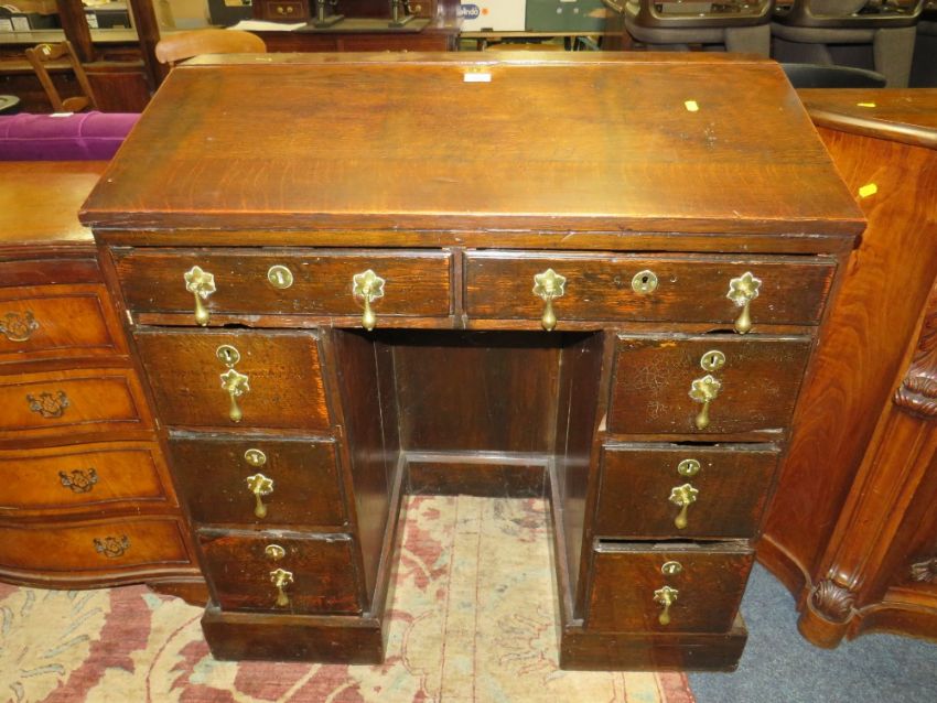 AN ANTIQUE OAK TWIN PEDESTAL DESK - W 94 CM