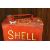 A VINTAGE PAINTED SHELL MOTOR SPIRIT CANISTER COMPLETE WITH ORIGINAL CAP (CAP IN OFFICE)