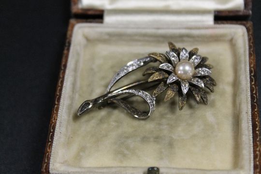 QUALITY ANTIQUE FRENCH SILVER BROOCH IN BOX