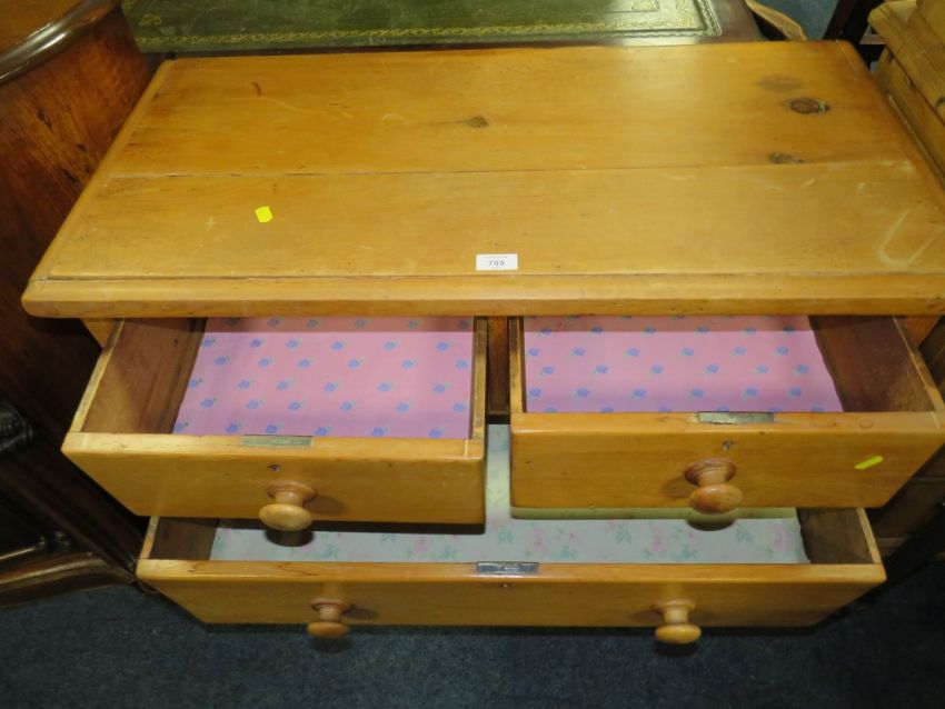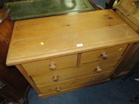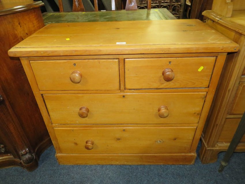 A VICTORIAN PINE CHEST OF FOUR DRAWERS - W 91 CM