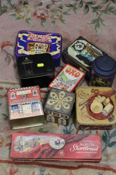 A TRAY OF ASSORTED COLLECTABLE TINS ETC