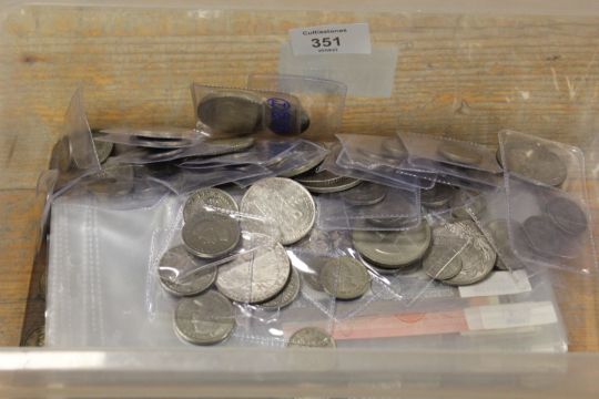 BOX OF SILVER COINAGE AND BANKNOTES
