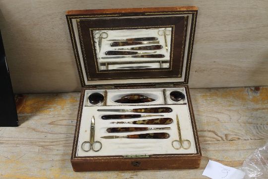 ANTIQUE MANICURE SET IN FITTED LEATHER CASE